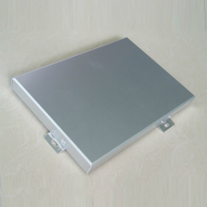 鋁單板采用優(yōu)質(zhì)鋁合金板加工形成。基材型號(hào)通常為3003,狀態(tài)為H24,其常規(guī)厚度為2mm,2.5mm和3mm三種。其構(gòu)造主要由面板、加強(qiáng)筋和角碼組成。面板和加強(qiáng)筋通過(guò)電焊螺釘連接,使之成為一個(gè)牢固的整體,極大地增強(qiáng)了鋁單板的強(qiáng)度與鋼性,確保了長(zhǎng)期使用過(guò)程中的抗風(fēng)壓能力和鋁板表面的平整度。