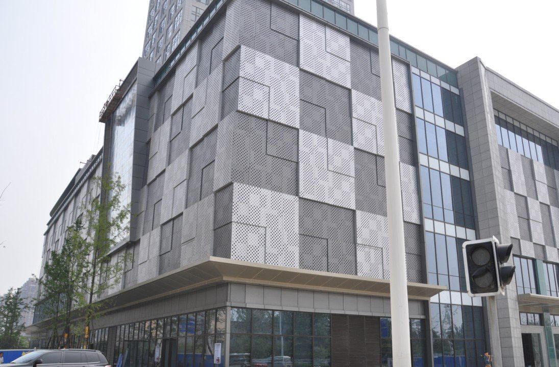 與常規(guī)鋁單板相比,沖孔鋁單板最大的特征就是表面形狀各異的沖孔(包括圓孔、方孔、五角星、六邊形孔等),裝飾效果突出,也能夠在一定程度上起到降低噪音的作用。集裝飾性與實用性于一體,沖孔鋁單板在工程裝飾中使用的越來越多。氟碳沖孔鋁單板特點: